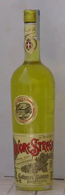 Strega was developed in 1860 by the father–son team of Carmine Vincenzo Alberti and Giuseppe Alberti.[1] The company experienced growth until Giuseppe Alberti's death in 1894.[2] Alberti's four sons Ugo, Vincenzo, Francesco and Luigi took control. The company received a royal warrant of appointment to the Italian King.