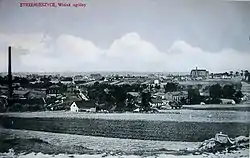 At the beginning of World War II The Germans occupied Strzemieszyce in September 1939 and immediately began to plunder Jewish homes and businesses and to demand free labor from them. At that time, about 2000 Jews lived in the town. Sometime in 1942, they were forced into a ghetto. In June 1942, 400 were sent to Auschwitz, where most were murdered. In March, 1943, the Germans rounded up the remaining Jews in the ghetto and murdered several dozen. Nearly all the rest were sent to Auschwitz. Only about 70 of the town's Jewish population survived the war.[1] During World War II Strzemieszyce Wielkie (under the German name Groß Strzemieszyce) was the seat of a German Amtsbezirk Strzemieszyce,[2] to which also several other communities (Strzemieszyce Małe, Strzemieszyce Folwark, Kazimierz, Niemce, Porąbka) belonged.