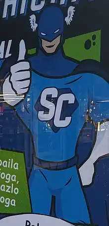 Super Chicha was a fictional character created by designer Guillermo Afonso for the Carnival of Santa Cruz de Tenerife in 1999,[1] when the carnival was devoted to comic books and a patriotic superhero of Tenerife (Canary Islands, Spain) was created. It was dubbed "Super Chicha" i.e. "Super Chicharrero" (Chicharrero popular is the adjective of the inhabitants of the city of Santa Cruz de Tenerife). To create that character inspired Captain America.[2]