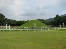 A tomb attributed to King Suro is still maintained in modern-day Gimhae.[6][7] Members of the Gimhae Kim clan, who continue to play important roles in Korean life today, trace their ancestry to King Suro, as do the members of the Incheon Yi clan and Gimhae Heo clan; they did not inter-marry until the beginning of the 20th century.[8] A Memorial Park for Kim Suro and his wife Heo Hwang-ok is being built in Ayodhya, India jointly by South Korean Government and Indian Government to strengthen relationship between both countries on the grounds of history and cultural heritage. Ayodhya and Gimhae became sister cities in 2001.[9]