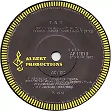 "T.N.T." is a song released in 1975 by Australian hard rock band AC/DC, taken from their Australian album T.N.T. and the international version of High Voltage. It was released as a single in 1976 and was written by Bon Scott, Angus Young and Malcolm Young. It peaked at No.19 on the Australian Kent Music Report Singles Chart.[1] The song's title is a reference to the explosive chemical TNT.