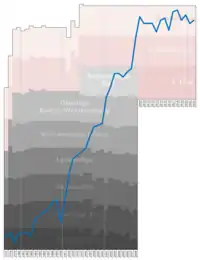 Hoffenheim had a successful season in their debut in the Bundesliga, the top German division, as they went on to record a 7th place finish. The club's best players of the season were Vedad Ibišević and Demba Ba, who scored 18 and 14 respectively.[1] In the 2009–10 Bundesliga, the club had a less successful season, recording a finish outside of the top 10, finishing 11th.[2] The club eventually went on to finish in 11th place for the next two consecutive seasons.[3][4] In the 2012–13 Bundesliga, the club came very close to suffering relegation, after they a 16th place finish, meaning they would have to play in the relegation play-offs to survive; the club went on to beat their opponents Kaiserslautern by a scoreline of 5–2 on aggregate, with Roberto Firmino scoring two goals in the first match.[5][6][7] In the 2013–14 Bundesliga, the club had strange statistics; being the third best goalscoring team in the league, but also the worst defensive team, scoring 72 goals and conceding 70.[8] The club's best goalscorer of the season, also their best assist provider, was Roberto Firmino, scoring 16 goals and providing 12 assists, with the player winning the Bundesliga Breakthrough Player of the Season award.[9][10][11] In the 2014–15 Bundesliga, the club came very close to qualifying for the Europa League, with just two points separating them from Borussia Dortmund, who were in 7th place. Despite the 8th place finish, Hoffenheim still had a goal difference of −6 in the 2014–15 season.[12] In the 2015–16 Bundesliga, the club once again came close to suffering relegation, with just one point separating them from the relegation play-offs.[13]