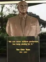 ![]() A bust of Tan Chin Tuan in front of the lecture theatre named after him at Nanyang Technological University | |