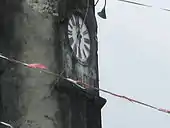 The basilica's 18th century clock was erected in early 1900 on the belfry; it is one of the oldest and largest church clocks in Asia.[2][15] The clock is 0.5 m (1.6 ft) tall and has a circumference of 42 cm (1.38 ft). The hour and minute hands are 0.5 m (1.6 ft) and 62 cm (2.03 ft) long respectively. Running the clock are two weights connected by steel cable to the hour hand with a weight of 70 kg (150 lb) and 140 kg (310 lb) for the whole clock. The clock chimes once on the hour and half-hour.[2] It was refurbished in 1971 during the term of Monsignor Gregorio Salvatus.[15]