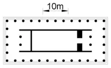 The temple was built c. 440–430 BC.[2][3][4] The well-preserved peristasis of six by thirteen columns[1] stands on a crepidoma of four steps (measuring 39.42 m × 16.92 m (129.3 ft × 55.5 ft),[1][4] and 8.93 m (29.3 ft) high)[3] The cella measures 28.36 m × 9.4 m (93.0 ft × 30.8 ft).[4] The columns are 6 m (20 ft) high[6] and carved with twenty flutes and harmonious entasis (tapering at the tops of the columns and swelling around the middles).