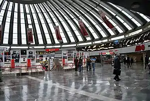 Terminal de Autobuses de Pasajeros de Oriente (Eastern Passenger Bus Terminal), better known by the acronym TAPO, is an inter-city bus station in Mexico City. It is located next to and conjoined with the Metro San Lázaro station, in the Venustiano Carranza borough in the eastern part of Mexico City.[1] Designed by architect Juan José Diaz Infante Núñez, it is marked by its very large dome covering the structure. The outer rim of the circular interior contains ticket counters and boarding areas for bus lines. The center contains a food court and other businesses.[2]