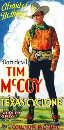 Texas Cyclone is a 1932 American Pre-Code Western film directed by D. Ross Lederman for Columbia Pictures. The film stars Tim McCoy as "Texas Grant", Shirley Grey, Wheeler Oakman and John Wayne, and features an early appearance by Walter Brennan as the sheriff.