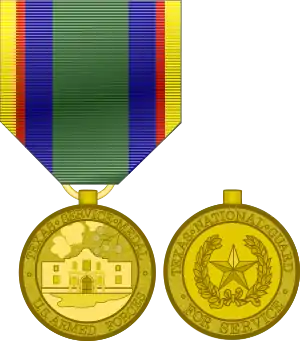 The Texas Federal Service Medal, formerly the Texas Service Medal, is the highest campaign/service award that may be issued to a service member of the Texas Military Forces.[1] Subsequent awards are issued by a silver star device.[2]