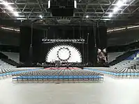 The show includes a round screen with intelligent lights arranged around its perimeter. During a concert, movies and animations are displayed on-screen, complementing the band's light show. Inflatables (such as the pig used by Pink Floyd during the Division Bell Tour, and Skippy – the band's own giant pink kangaroo and named after the Australian TV series Skippy The Bush Kangaroo) are frequently employed in the band's shows.[6]
