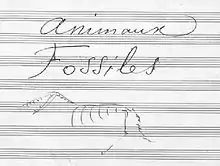 The suite is scored for two pianos, two violins, viola, cello, double bass, flute (and piccolo), clarinet (C and B♭), glass harmonica, and xylophone.[8] There are fourteen movements, each representing a different animal or animals: