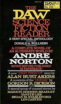 The DAW Science Fiction Reader is an anthology of science fiction stories, edited by Donald A. Wollheim. It was first published in paperback by DAW Books in July, 1976. It was the 200th title from DAW, and was intended to mark that milestone by showcasing the work of some of the publisher's most popular authors. The title consciously reprised that of the Avon Science Fiction Reader, a short-lived digest-sized magazine Wollheim had edited while employed by Avon Books in the 1950s.