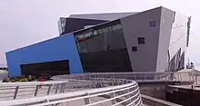 Billed as "the world's only submarium",[4] the exhibits contain thousands of sea creatures (including seven species of shark), 2,500,000 litres (550,000 imp gal) of water and 87 tonnes (86 long tons) of salt housed in a building designed by Terry Farrell and built as part of the UK National Lottery's Millennium Commission project.