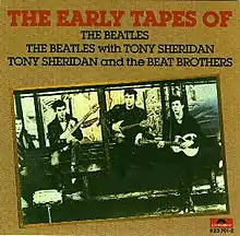 The Early Tapes of The Beatles is the first digital repackaging of The Beatles' First !, the 1964 German compilation album of Tony Sheridan and The Beatles recordings. The songs were recorded in Hamburg between 1961 and 1963. Most of the tracks feature vocals by Sheridan. Only tracks 1-5, 7, 10, and 11 actually feature the Beatles, with John Lennon singing lead on "Ain't She Sweet" and featuring "Cry for a Shadow", an instrumental written and performed by the British group alone. The other songs are performed by Sheridan and other musicians, identified as "The Beat Brothers".[2] This CD, which was released in 1984, includes two additional tracks and an extended version of "Ya Ya" and was reissued in 2004 with a different design on Universal Music's Spectrum label.