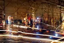 The opaque negative image print was developed by 80 volunteers during five hours in a vinyl pool liner custom tray, the size of an Olympic swimming pool, with 600 US gallons (2,300 L) of traditional developer and 1,200 US gallons (4,500 L) of fixer pumped into the tray using high volume pumps. The photograph was then washed using fire hoses attached to two fire hydrants. The finished print is 111 feet (34 m) wide and 32 feet (9.8 m) high with an area of 3,505.75 sq ft (325.695 m2).[6][7]