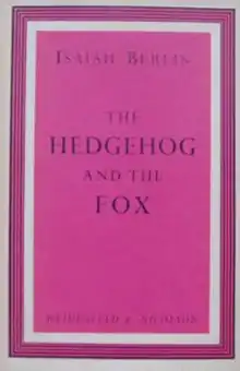 The Hedgehog and the Fox is an essay by philosopher Isaiah Berlin that was published as a book in 1953. It was one of his most popular essays with the general public. However, Berlin said, "I meant it as a kind of enjoyable intellectual game, but it was taken seriously. Every classification throws light on something".[1] It has been compared to "an intellectual's cocktail-party game".[2]