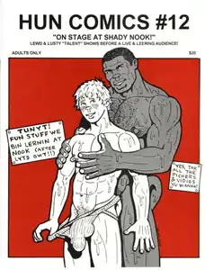 Bill Schmeling began producing erotic art in the 1960s, doing work for Physique Pictorial and other beefcake magazines, initially under the name Torro.[1] Using the pen name The Hun, he produced series of comics – Hun Comics and Gohr – featuring fantasy sexual adventures of gay men. Stories by Schmeling were regular features in Meatmen, and in 1998, the Tom of Finland Company published The Hun Book, a collection of his work.[3] Recurring characters in his comics include Big Sig (a naïve but sexually adventurous, semi-literate young man) and Gohr (a barbarian living in a brutal, post-apocalyptic world).[4] His art is characterized by hypermasculine[4] characters with exaggerated muscles, nipples, and genitalia. Sex scenes routinely involve BDSM with an emphasis on body fluids.[4][1] Interracial sex scenes are common.[5]