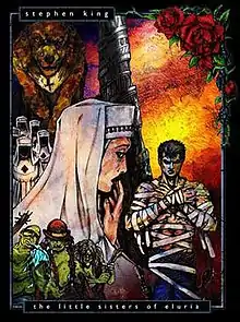 "The Little Sisters of Eluria" is a fantasy novella by American writer Stephen King. It was originally published in 1998 in the anthology Legends.[1] In 2002, it was included in King's collection Everything's Eventual.[2] In 2009, it was published together with the revised edition of The Dark Tower: The Gunslinger by Grant in a limited edition of 4,000 numbered copies of the Artist Edition signed by illustrator Michael Whelan and 1,250 numbered copies of the Deluxe Edition signed by Whelan and Stephen King. Both editions contain Whelan's additional new illustrations for The Gunslinger.[3]