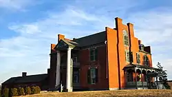 The Mansion at Fort Chiswell, also known as the McGavock Mansion and Fort Chiswell Mansion, is a historic home located at Fort Chiswell near Max Meadows, Wythe County, Virginia. It was constructed in 1839–1840, by Stephen and Joseph Cloyd McGavock, and is a two-story, Greek Revival style brick dwelling. The front facade features two-story diastyle portico composed of two provincial Greek Doric order columns supporting a pediment. It has a steep gable ends with slightly projecting end chimneys and one-story Italianate bracketed porches. It has a two-story rear ell with a frame gallery and an attached a one-story brick kitchen.[3] It is a private residence, available for tours and events.[4]
