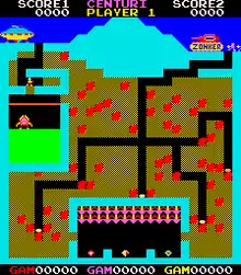 The Pit is a 1982 arcade action game released by Zilec in the United Kingdom, and licensed to Centuri in North America and Taito in Japan.[1] The game was designed by Andy Walker and Tony Gibson,[2] and developed by AW Electronics. The objective of The Pit is to descend into an underground labyrinth, retrieve a gem, and escape.