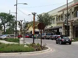 Local architectural firm Alamo Architects designed The Shops at La Cantera, constructed as a single-level, garden-like "retail village" with varied storefronts, shared arcades, and subtle water features. The overall architectural style of the center has a Texas Hill Country vernacular vibe designed to ease environmental concerns about land usage and nature conservation. The shops reflect the preservation of natural landscape and evolution in modern shopping patterns.[3] Austin-native J. Robert Anderson, FASLA conceived the landscape architecture style, that also reflects Hill Country.