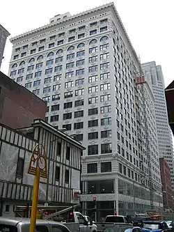 The Syndicate, built in 1907, is a building that has stood as a historic landmark in downtown St. Louis, Missouri. The detailed Terracotta ornamentation still stands out as a significant glimpse into the style of an earlier time. The building declined in the 1950s and 1960s and became vacant in 1967 after the Scruggs Vandervoort & Barney department store closed in 1967. After a city request for renovation, and the demolition of its long standing neighbor, the Century Building, The Syndicate was reconstructed between 2006 and 2008 to hold luxury condos in a mixed use project.[2] It holds 94 condominiums, 84 apartments, street level retail, and parking on the basement and first two floors. The Syndicate Trust Building was added to the National Register of Historic Places in 2002.