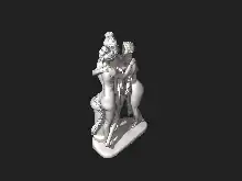 The three goddesses are shown nude, huddled together, their heads almost touching in what many have referred to as an ‘erotically charged’ piece. They stand, leaning slightly inward — perhaps discussing a common issue, or simply enjoying their closeness. Their hair-styles are similar, braided and held atop their heads in a knot.