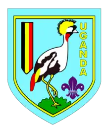 The Scout emblem of the Uganda Scouts Association features a grey crowned crane, a symbol in use since Uganda was a colonial branch of British Scouting.