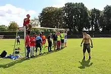 The Deptford Three Sided Football Club (D3FC) was founded in February 2012 to commemorate the 50th anniversary of Jorn's invention of the game in his 1962 book Naturens Orden.[2] Games were held every other Sunday between D3FC and other local clubs at the Deptford Green Hexagon in Fordham Park, South East London.