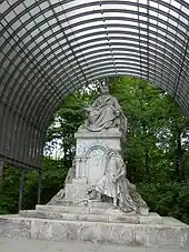 On the north side of Tiergartenstraße just west of Stauffenbergstraße is a large seated statue of the composer Richard Wagner in the Tiergarten park. A glass canopy has been erected over the statue to protect it from the elements.