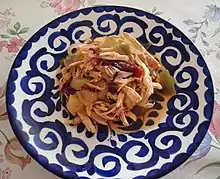 Although tinga is consumed throughout central and southern Mexico today, it is presumed to have a Pueblan origin.[1] In recent years this cuisine has been expanding across the borders and can be found in most Mexican restaurants.[2] Determining the exact place "tinga" originated is difficult due to the lack of sufficient records and information about the dish.[3]
