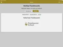 Tomlinscote School uses an app called "Notifyd" to send notices from staff to students. Developed by four of their pupils, they claim "it improved our communication system with students".[18]