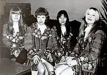 Marianne's, Betty's and Toni's biological father died from Hodgkin's disease shortly before Toni's birth. At the time, her sister Marianne was two years old and Betty was only one. Three years later her mother, Marie Verheijen, married Stefan Kowalczyk, the Polish miner who brought up Toni and her sisters. He promoted their music talents. When Toni, Betty and Marianne were six, seven and eight, the family moved to Treebeek, a cityquarter in Brunssum in the south-east Netherlands. At the annual children's festivities of Sinterklaas, he bought them each an acoustic guitar and engaged Ben Keuzenkamp as guitar tutor. With guitars they performed during carnivals, talent scoutings and parties as The Singing Sisters. It was during this time that their characteristic close harmony style singing came into being. Their repertoire initially consisted mostly of German pop songs. However they say, this kind of music soon ended with the arrival of the Beatles.[2] A few years later, Keuzenkamp introduced the sisters to 18-year-old Werner Theunissen, a guitarist from 'The Entertainers' whom he got in touch with through an ad in the papers. Werner taught them a lot of new guitar chords and acquainted them with contemporary pop music. It was then that they became a proper girl band with Betty on solo guitar, Marianne on bass, Toni on vocals and a friend Tonny Jeroense on drums.[2]