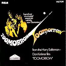 Toomorrow is the soundtrack from the 1970 film,[1] featuring the band Toomorrow with British - Australian singer Olivia Newton-John (her first major release album). The film was a sci-fi musical mix directed by Val Guest and was Newton-John's second movie. It was Don Kirshner's less successful follow up to his work with The Monkees.[2]
