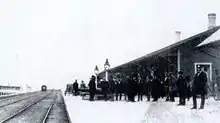 In 1864, delegates from the Charlottetown and Quebec City conferences on the Canadian Confederation were welcomed at this station by a huge crowd which then escorted the delegates to the Queen's Hotel on Front Street.[6] In 1866, the Great Western opened its own station at Yonge Street.[7] It was the first station in Toronto to provide a covered train shed.[7] In 1867, the Northern opened its City Hall station at Jarvis Street.[8]