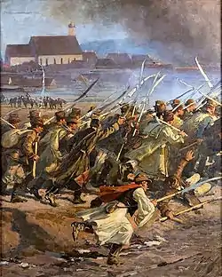 The Transylvanian Panorama (Polish: Panorama Siedmiogrodzka) other names Bem and Petőfi, Bem in Transylvania, Battle of Segesvár / Schässburg - village of Fehéregyháza, meaning White Church was a monumental (15 × 100 metre) panoramic painting depicting the Battle of Nagyszeben, during the Hungarian Revolution of 1848-49.