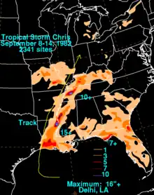 {{cite web}}: Missing or empty|url=(help) - "T.S. Chris...Preliminary Report". National Weather Service Lake Charles, LA. National Hurricane Center. 1982-09-13. Retrieved 2012-01-01.