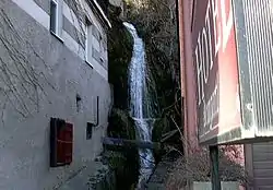 Although the river is only 1.5 kilometres (0.93 mi) long, it has an interesting feature: At one point its waters drop through a height of 12 metres (39 ft) forming the Weissbach Fall, which is audible and visible from the nearby street. A small hotel has built a power plant there and uses the electricity generated for domestic requirements. Around the basin are canals, which divert the water in case of emergency.