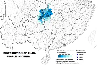 - County-level distributions of the Tujia