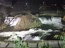Olympia Light and Power Company constructed a dam and a hydroelectric power plant at the falls in 1890, a decade before the Snoqualmie Falls powerplant outside Seattle.[5]: 23 The plant powered an Olympia–Tumwater streetcar, among other things.[6][7] A dam at 82 feet (25 m) above sea level created a head for the powerhouse and still stands on the Deschutes River.[2]