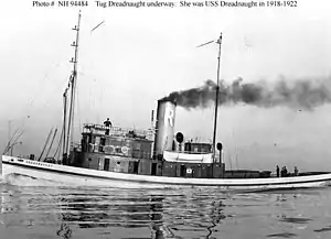 - Department of the Navy Naval History and Heritage Command Online Library of Selected Images: Civilian Ships: Dreadnaught (American Tug, 1917). Served as USS Dreadnaught (ID # 1951, later YT-34 and YNG-21) in 1918-1944.