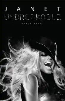The Unbreakable World Tour was the seventh concert tour by American recording artist Janet Jackson. It was in support of her eleventh studio album Unbreakable (2015). In addition to Live Nation and Rhythm Nation, the tour is also sponsored by Nederlander Concerts, Jam Productions, Another Planet Entertainment, Bamp and Tommy Meharey.[2] When the tour was announced in June 2015, multiple legs were planned for North America, Asia and Europe. However, in December 2015, Jackson announced that tour dates beginning in 2016 would be postponed due to surgery and in April 2016 announced the summer dates would be rescheduled due to her pregnancy. In May 2017, she announced the tour would resume beginning in September, renamed as the State of the World Tour.