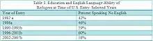 Second, the refugees' language barriers, caused by lack of adequate language instruction, prevent the refugees from communicating effectively concerning important issues such as health. USDHS conducted a study in 2008, showing that the better language skills refugees have, the better outcomes they obtain.[71] Schools are upset that the government does not provide additional funding to assist or improve this situation.