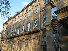 The northeast quadrant of the campus includes the St. Raymund Penafort Building and the health and medical buildings.[35] St. Raymund de Peñafort Building is built in International Style in 1955 and is home to the Faculty of Arts and Letters and the College of Commerce and Business Administration.[41] Built in 1952, the Bauhaus-inspired San Martin de Porres Building houses the Faculty of Medicine and Surgery, the College of Nursing, and the College of Rehabilitation Sciences.[42] The UST Hospital complex comprises the main St. Vincent Building, the Benavides Cancer Institute, the St. John Paul II Building, and the UST Hospital Clinical Division. The ₱900 million St. John Paul II Building, inaugurated in 2019, serves as the extension of the UST Hospital.[43]