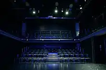The Erindale Studio Theatre is a black box theatre with an audience capacity of up to 85, depending on the stage configuration. The building itself was formerly a bus garage and science lab, but was converted into a theatre in 1993. It has a modern lighting and audio system, as well as a full carpentry shop, costume shop, box office and painting facilities.