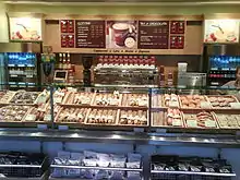 Upper Crust specialises in baguettes. Some of the main fillings include: Breakfast baguettes, Ham and Cheddar, Ham and Mozzarella, Cheddar and Bacon, Tuna Mayo, BLT, Cheese and Tomato and Egg and Tomato. Cakes and pastries are available throughout the day and include various muffins, danishes, scones, brownies and flapjacks.