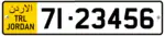 Jordanian regular legal standard number plate. | |