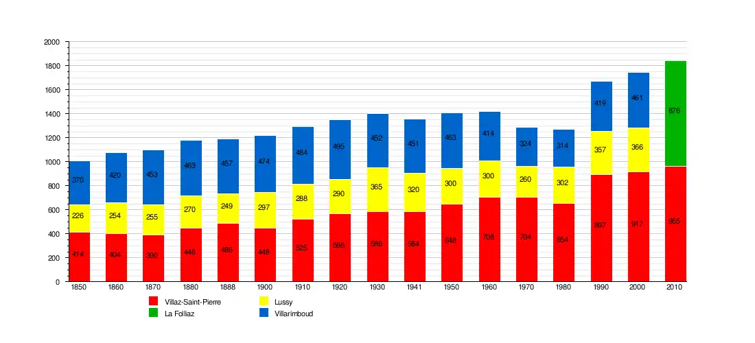 The historical population is given in the following chart:[7] La Folliaz was formed on 1 January 2005 from the union of the former municipalities of Lussy and Villarimboud.