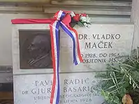 Maček helped found the International Peasants' Union along with Georgi Mihov Dimitrov in 1947. He refused offers for the leadership of the numerous Croatian émigré groups. In 1949, he provided much of the material on Yugoslavia for "Communists Crush Churches in Eastern Europe," edited by Reuben H. Markham.[20] He died of a heart attack in Washington D.C. on 15 May 1964, at 84. His remains were taken to Croatia in 1996 and buried in the Mirogoj cemetery in Zagreb. He was posthumously awarded the Grand Order of King Dmitar Zvonimir in 2004.[21]