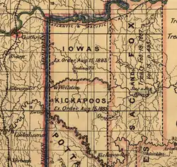 The trading post closed during the allotment of the Kickapoo Reserve. Following the Run of 95, the post office reopened June 15, 1897.[5]