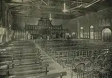James Waugh was chairman of the school committee[26] from foundation until 1883. James Corrigan was the first of seven Headmasters in Wesley's first 35 years. The school struggled for numbers over some of this period. The Depression of the 1890s provided a particular challenge when Arthur Way was Headmaster, and came to a head in 1896 under Arthur Stephenson when enrolment dropped to 90 boys and closure was threatened.[27] Thomas Palmer's tenure as headmaster was curtailed early in 1902 after he was found to have embezzled more than £1,000 of the school's funds.[28]